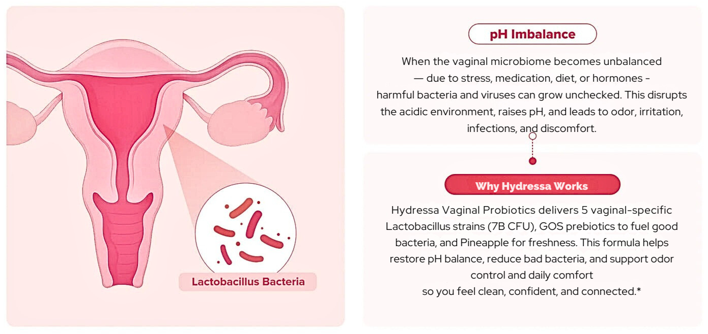 Your vaginal health depends on a delicate balance of good bacteria. But everyday stressors — from hormonal shifts to harsh products — can throw things off. When that happens, bad bacteria take over, pH levels rise, unpleasant odor and discomfort follow.